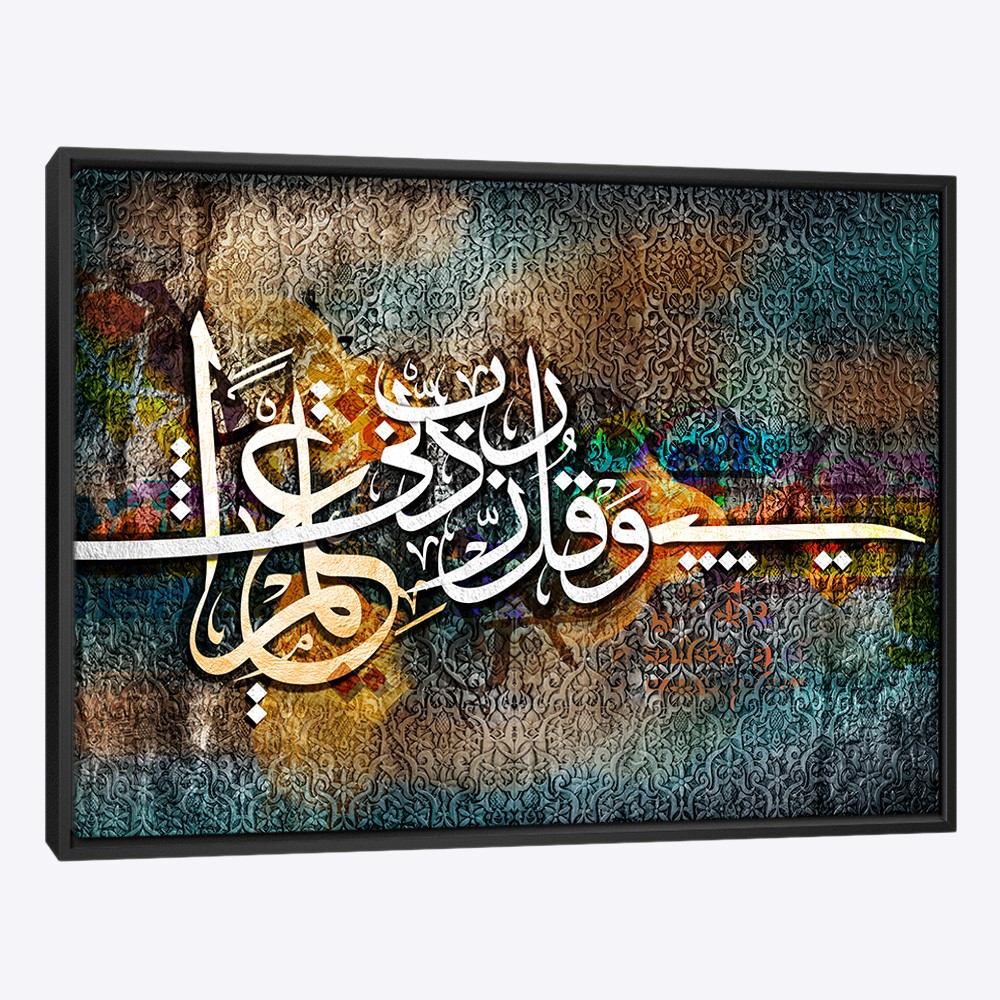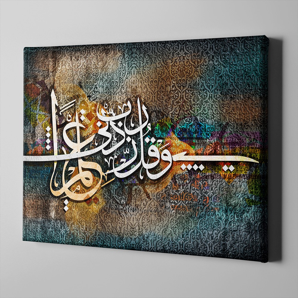 عادل الجماللوحة جدارية بالخط العربي التجريدي من إبداع الفنان عادل الجمال. مجهزة عن طريق الطباعة بدقة عالية على قماش الكانفس الفاخر والذي بدوره يشد على إطار مخفي من الخشب السويدي. جميع اللوحات الفنية الجدارية من باري غاليري تجهز يدويا حسب الطلب والمقاس المطلوب وتصلك جاهزة للتعليق.