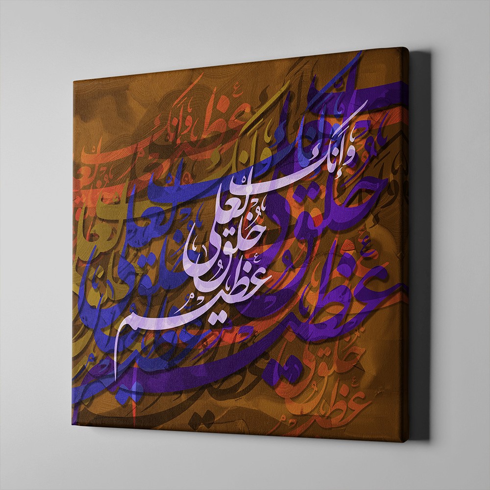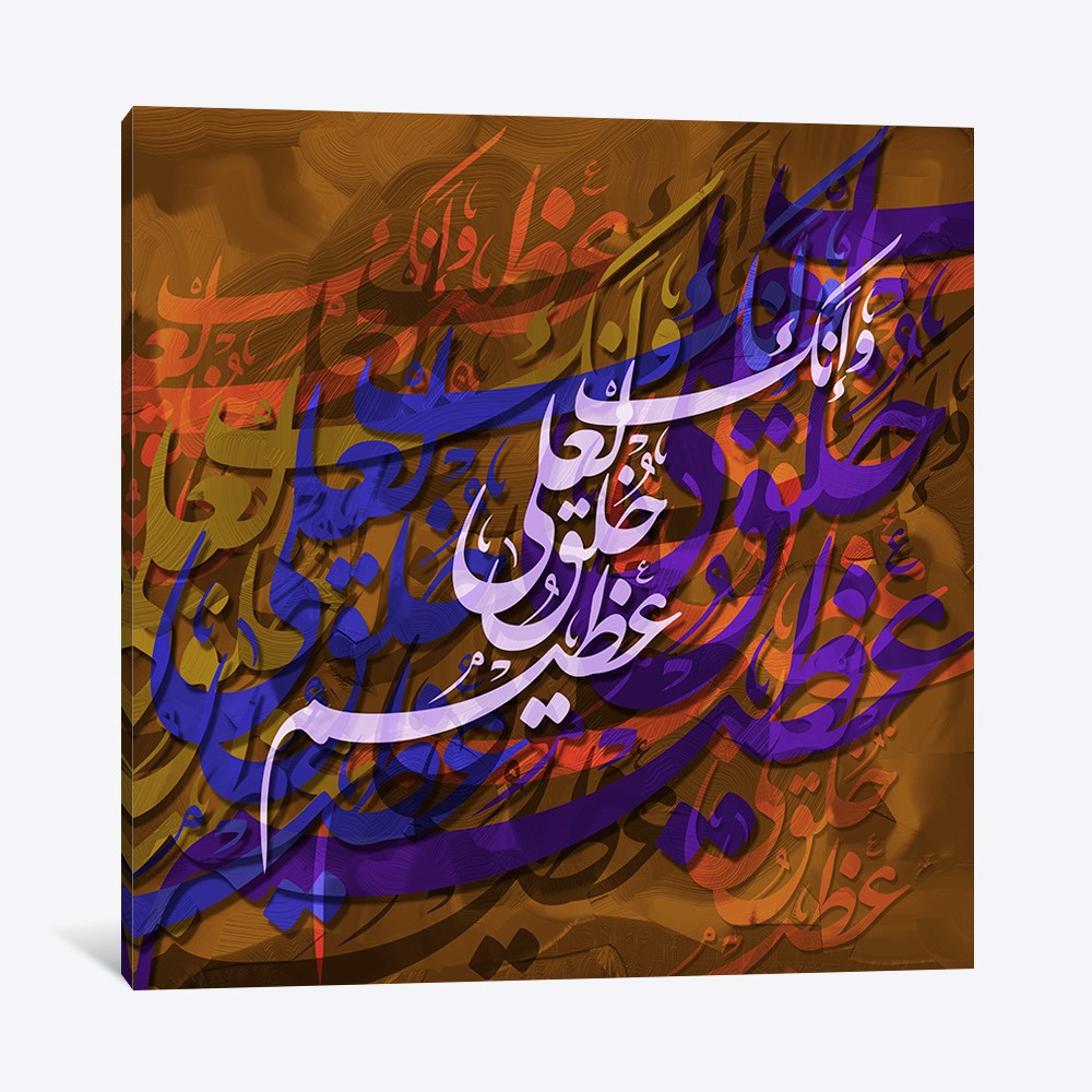 عادل الجماللوحة جدارية بالخط العربي التجريدي من إبداع الفنان عادل الجمال. مجهزة عن طريق الطباعة بدقة عالية على قماش الكانفس الفاخر والذي بدوره يشد على إطار مخفي من الخشب السويدي. جميع اللوحات الفنية الجدارية من باري غاليري تجهز يدويا حسب الطلب والمقاس المطلوب وتصلك جاهزة للتعليق.