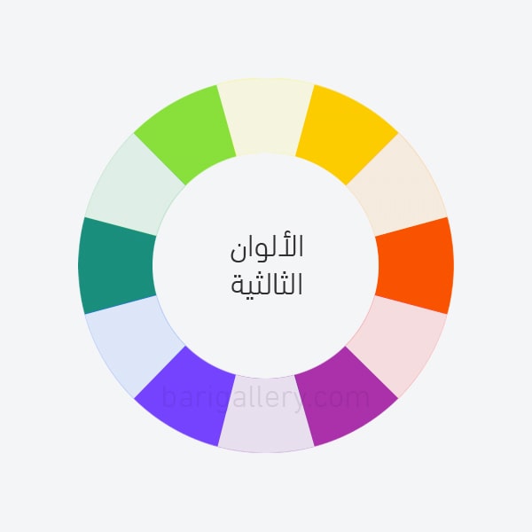تتكون عجلة الألوان من ثلاثة ألوان أولية، ثلاثة ألوان ثانوية، وستة ألوان ثالثية، كما هو موضح في الصور أدناه: